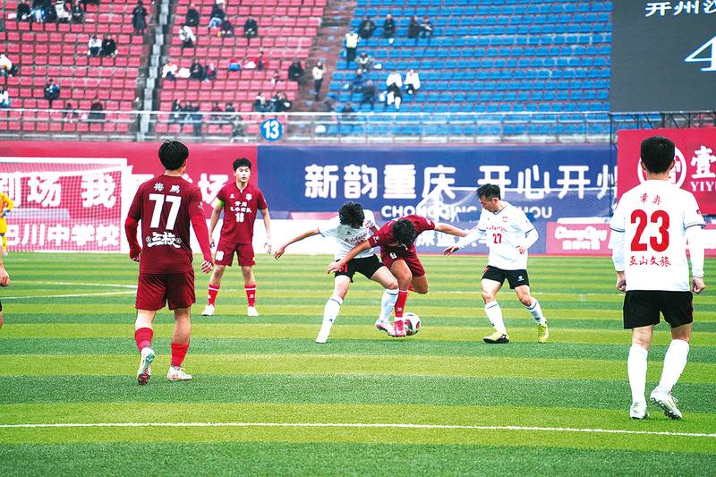 2025重庆城市足球超级联赛渝东北焦点战在开激战开州汉丰湖队以1:0击败云阳恐龙队比分1:0。球员激烈拼抢。球迷为球队摇旗呐喊助威。12月14日,2025重庆城市足球超级联赛焦点战在开州打响,开州汉丰