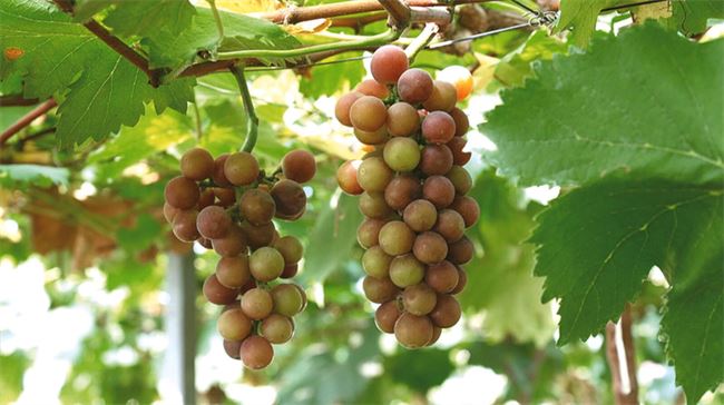 12117 次浏览 08-23近日,重庆市开州区竹溪镇大塆村40余亩葡萄喜迎丰收,一串串晶莹剔透的永优葡萄挂满枝头,吸引众多游客前来采摘品尝。走进大塆村葡萄种植大棚,一串串颗粒饱满、色泽诱人的葡萄缀满藤蔓,果香四溢。不少游客穿梭于