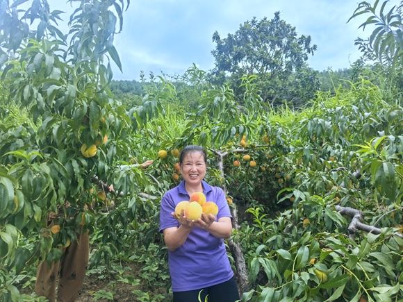 山腰的集体产业园里,返乡青年周霞正给黄桃套袋:“土地流转金+务工工资+分红,一年顶过去三年!”通过“支部+合作社+农户”,全乡发展特色经果林700余亩,户均增收5000元。